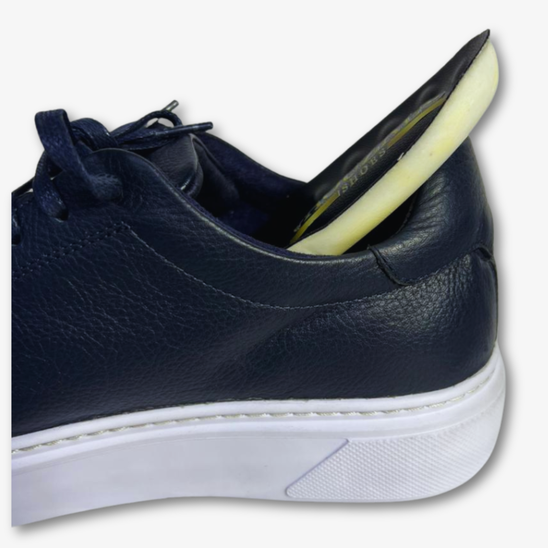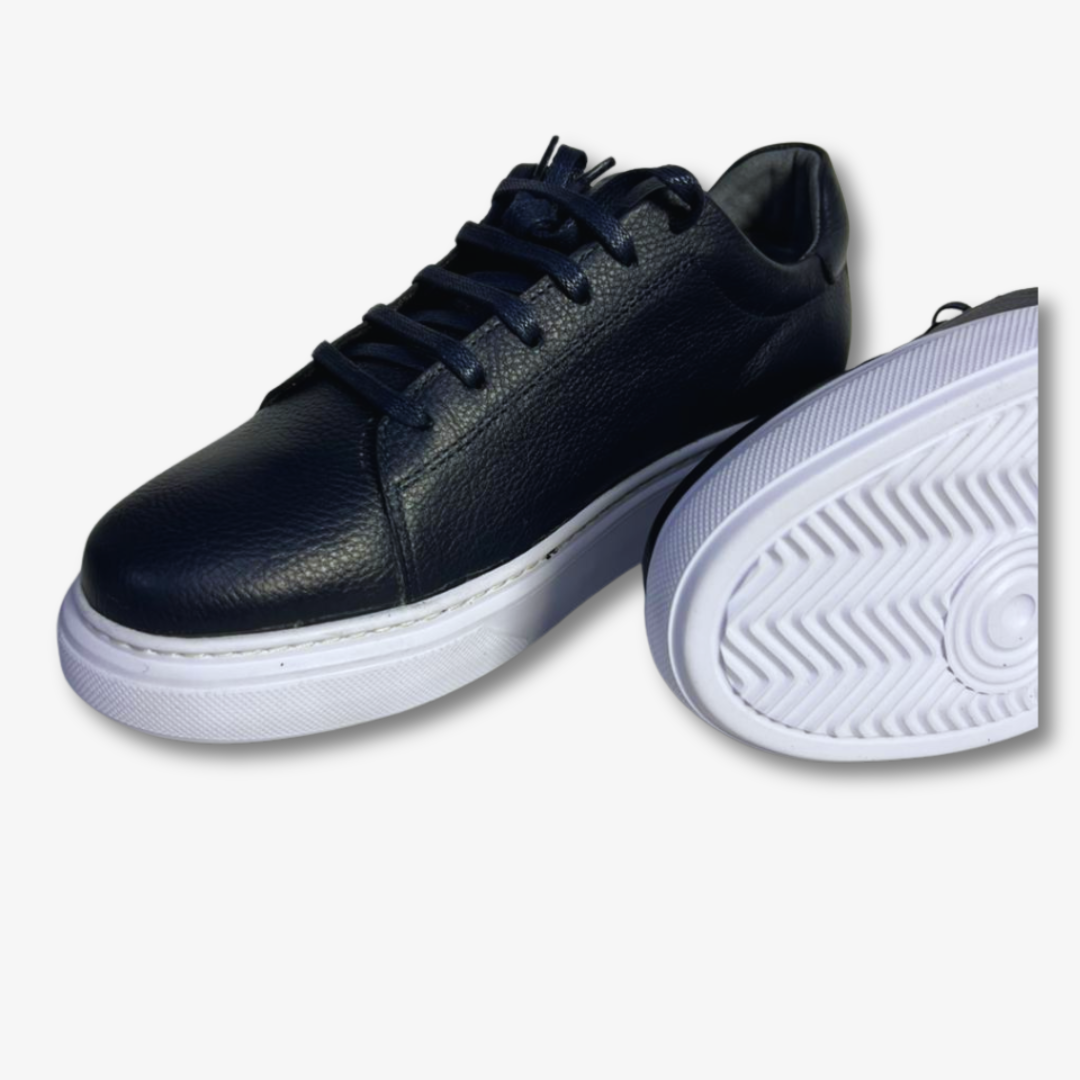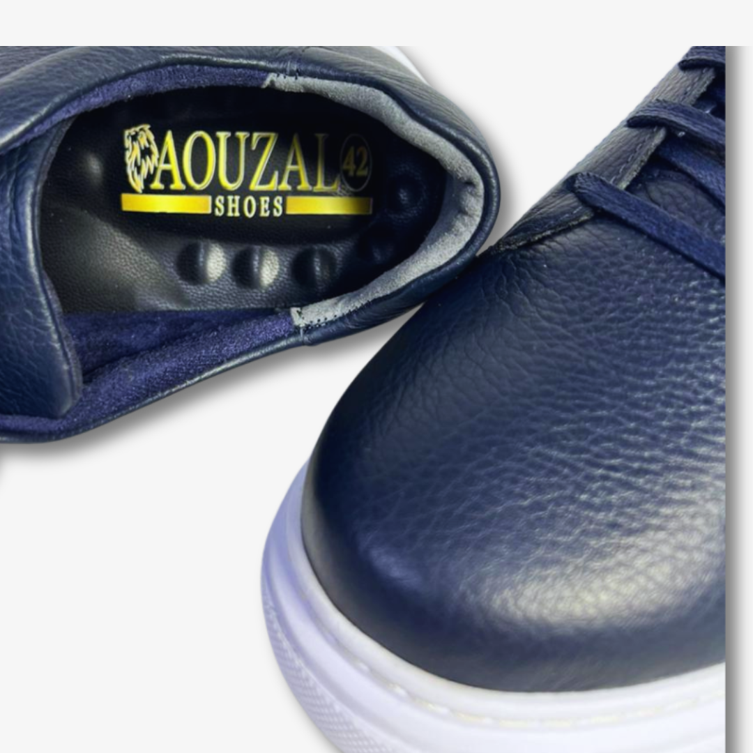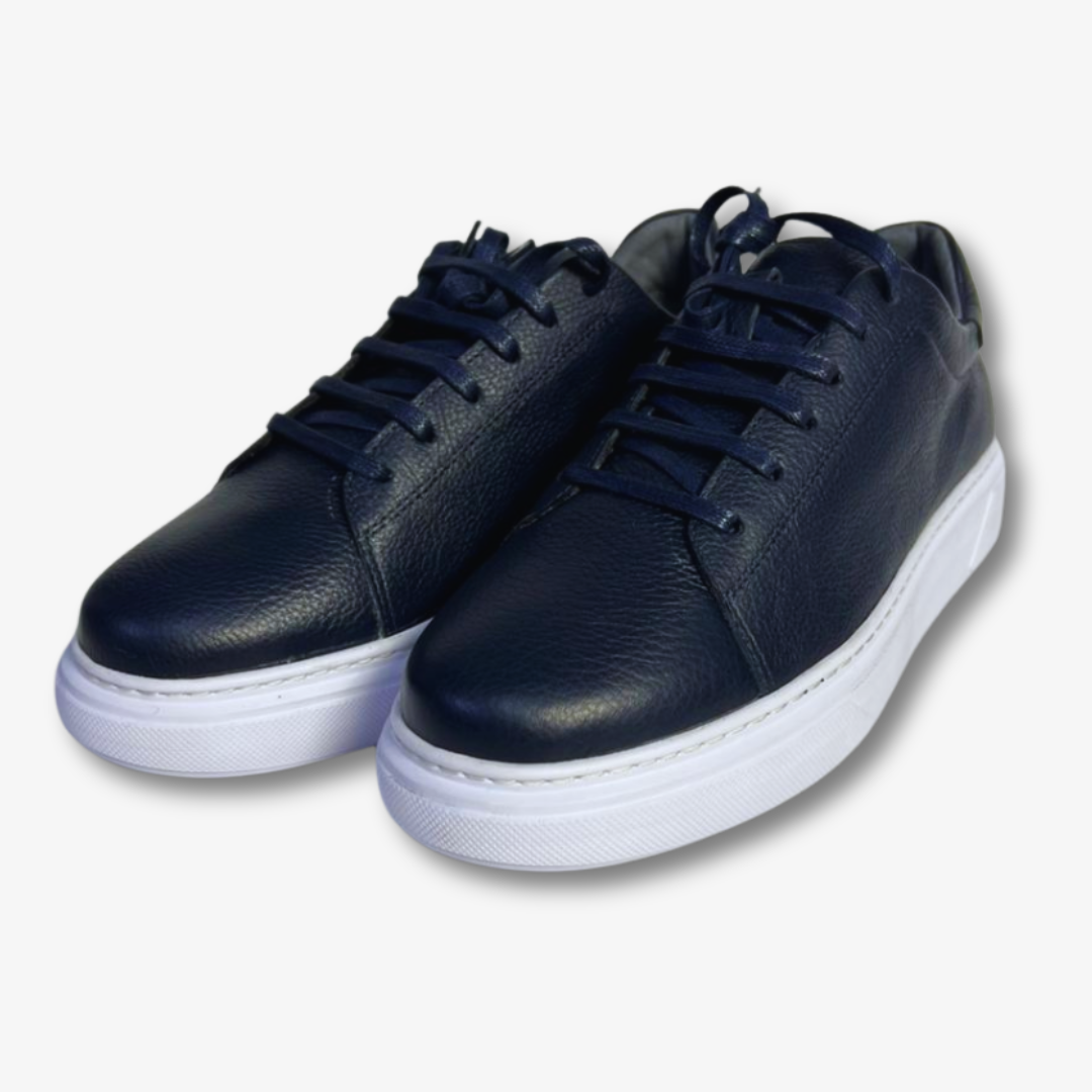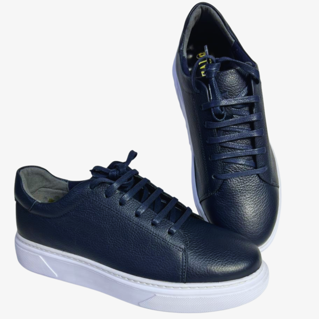 اجمع بين الراحة والأناقة مع هدا الحذاء الرياضي بالجلد االازرق الغامق.